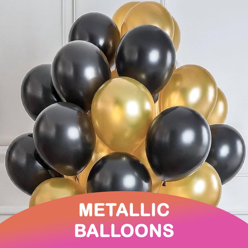 HK Balloons Rubber Pack of 100 Metallic Color Balloons For Birthday Decoration Baby Shower Anniversary Wedding Decorations Balloons Metallic Themed Decoration Items Kit