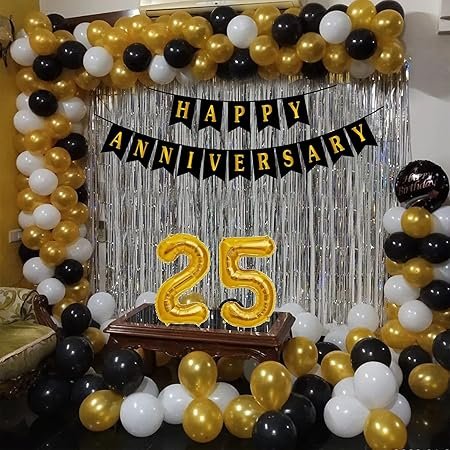 25th Anniversary Decoration Items Surprise Gift For Wife Husband Parents 15 Golden 15 Black15 White Balloon
