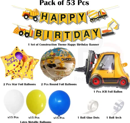 Decoration Printed Construction Theme Happy Birthday Decorations Combo Kit…