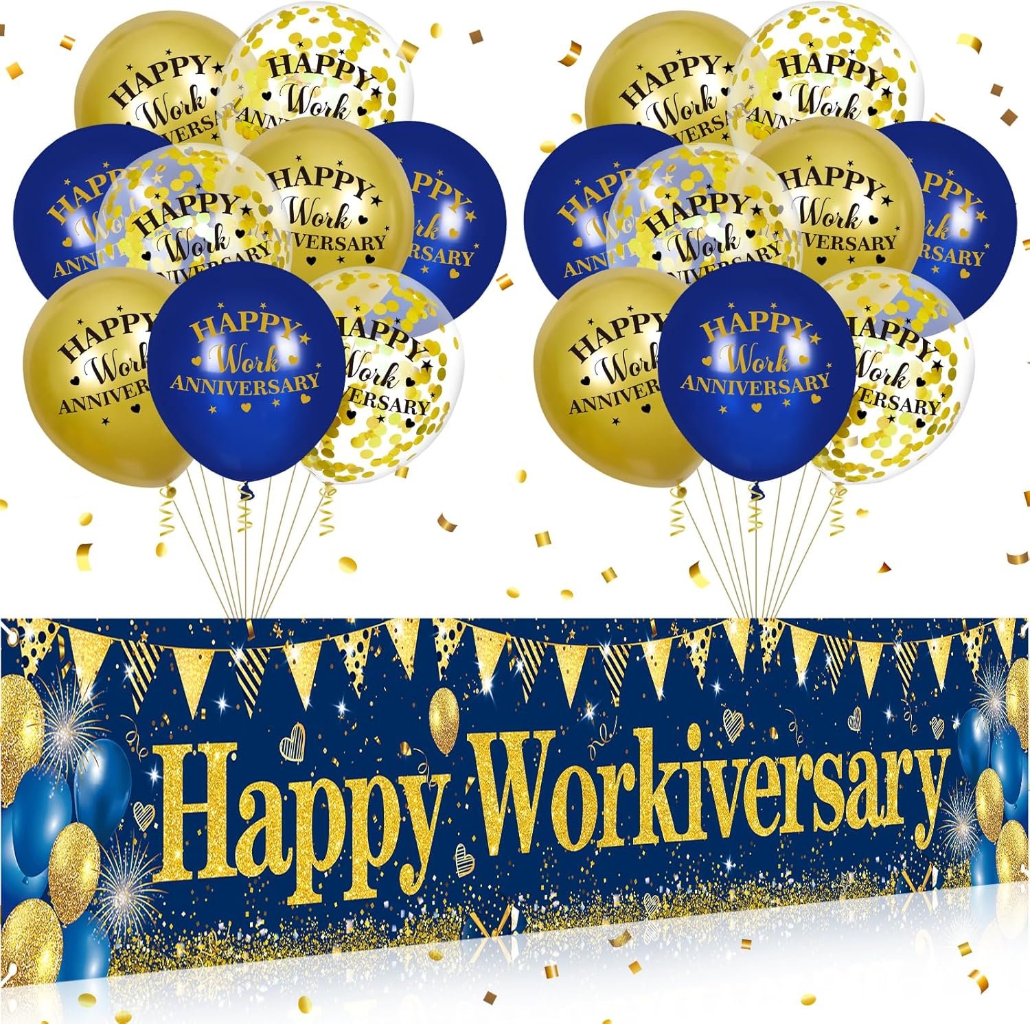 - 🎁Durable Material: The blue gold Happy Work Anniversary banner yard sign is made of quality polyester, which is bright color, washable, and tear resistant, the balloon is made of quality latex, not easy to break, bringing a unique decoration to your happy work anniversary party