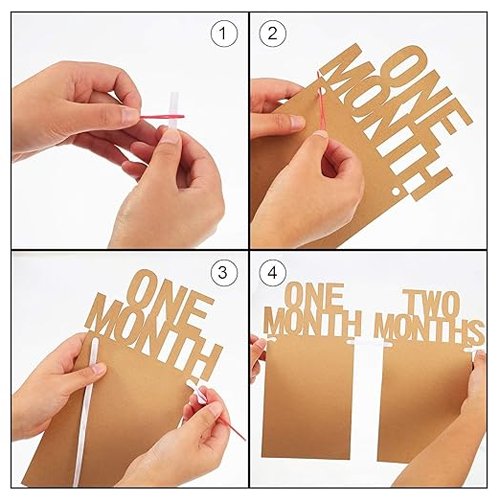 - photo banner for birthday party Easy Assembly: The paper cards feature two holes and come with a needle for easy assembly of the monthly photo banner made of thick paper (cardstock). This simplifies the process, allowing you to effortlessly create a charming decoration with the included ribbon.