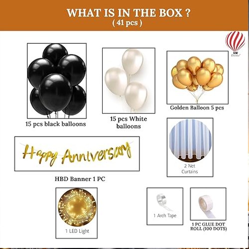 HK balloons 41 Pcs Anniversary Decoration Item For Cabana Tent Happy Anniversary Decoration Set With Net Curtain For Anniversary Women, Husband, Backdrop Decoration Kit Set Combo,Multi