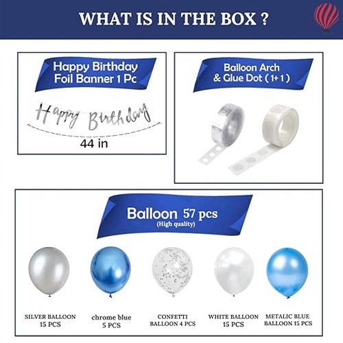 Be the first to review “HK balloons 57Pcs Blue Theme Birthday Decoration Item kit Banner Blue Balloons for Birthday Decorations for Boys With Silver Confetti Balloon Chrome Balloon For Husband”