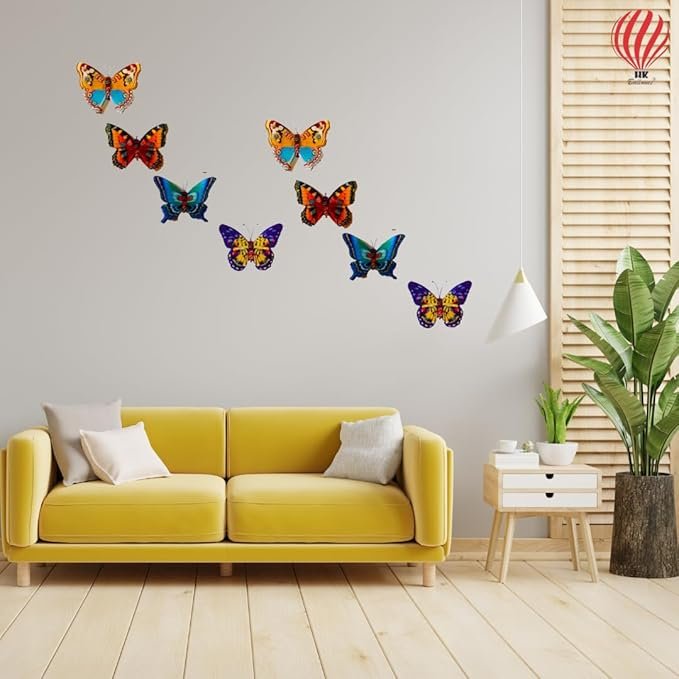 HK Balloons 8 Pcs Wall Stickers Butterfly Wall Stickers 3D House Decorations Double Layer Multicolour Butterfly Stickers for Home and Birthday Decorations