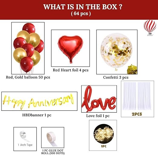 Hk Balloons Anniversary Decoration Items Pack Of 62 Kit Anniversary Balloon Decoration For Love Wedding Decoration Set For Couple With White Net Curtains & Confetti Balloons