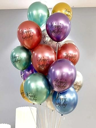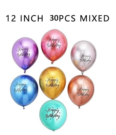 HK balloons Happy Birthday Printed Metallic Chrome Balloons For Birthday Decorations Item Balloons – Pack of 30