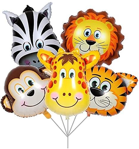 HK balloons Pack of 56 Pcs Jungle theme Birthday Party Decorations items For boys Forest Theme Happy Birthday Foil balloons Animal Face Foil, Chrome Balloons