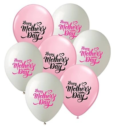 HK balloons Rubber 30 Pcs Celebrate This Mother’S Day With Our Best Mom Ever And Happy Mother’S Day Balloons Pack Of 30 Pink & White Balloons (Mother’S Day Printed Balloons Pack Of-30)