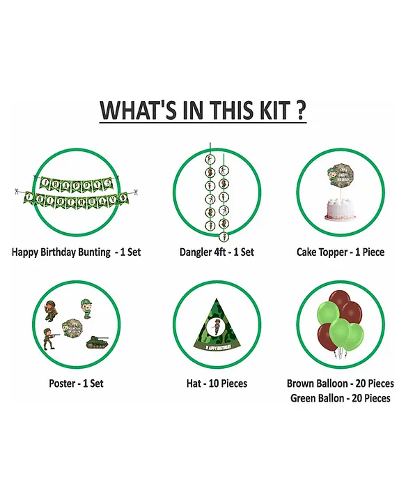 Military Theme Birthday Decoration Paper Fan Kit for Kids