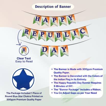 Republic Day Decoration Combo Including Paper Banner, Large Ribbon…