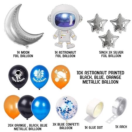 Space Theme Birthday Decoration Kit – 55Pcs, Planet & Astronaut Rocket Moon & Stars Foil Balloons, Multicolor